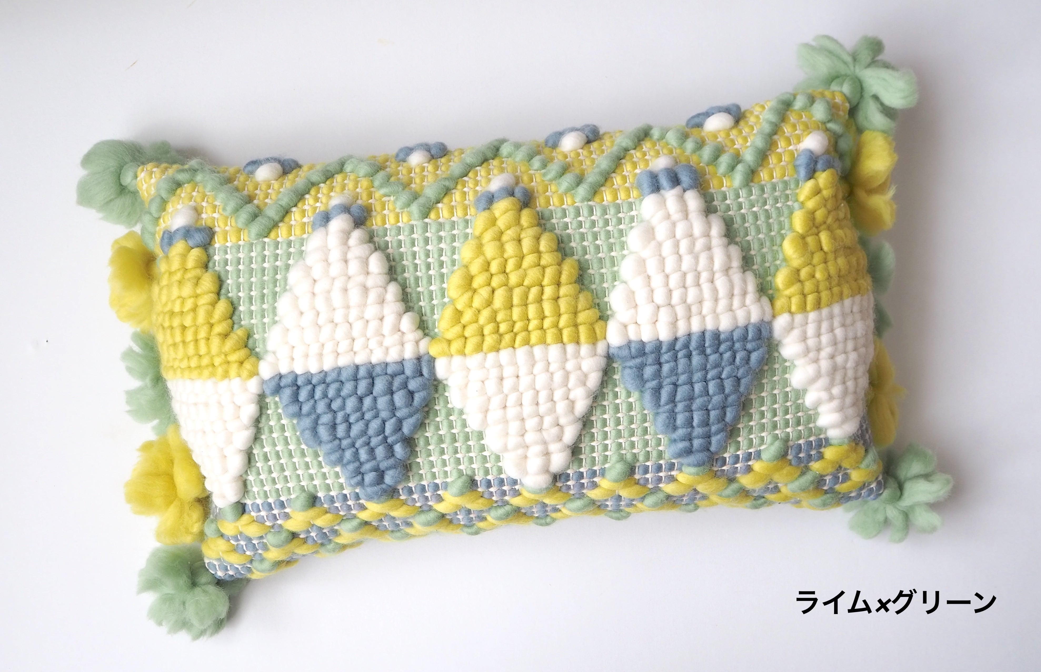 ウールのポコポコとした幾何学模様やフリンジがお部屋にそっと彩りを与えてくれるクッション。(ヌードクッション付き)